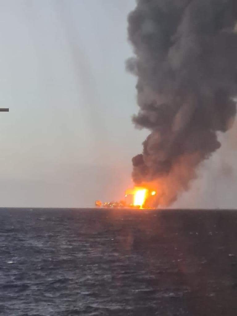 Otras embarcaciones llevan a cabo la labor de contra incendio, tratando de contener el fuego que se presenta en las instalaciones.