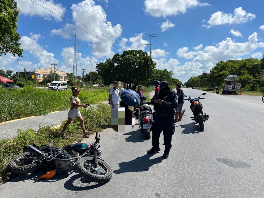 Cancún.- Trágico accidente se registró la tarde de este martes en la supermanzana 226, cuando el conductor de una motocicleta atropelló a un ciclista; paramédicos de la Cruz Roja confirmaron el fallecimiento.
