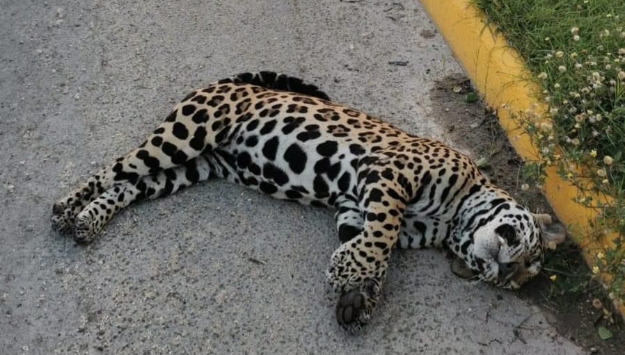 Un bello espécimen de Jaguar (Panthera onca) macho fue atropellado en la carretera federal 307; de acuerdo con lo relatado por testigos, unas personas intentaron llevarse el cuerpo y fueron detenidas por un grupo de biólogos que pasaba por la zona.
