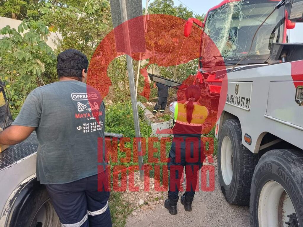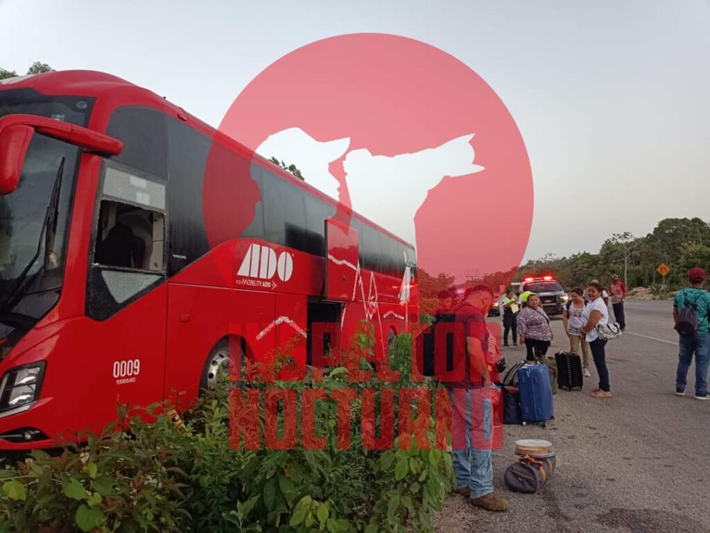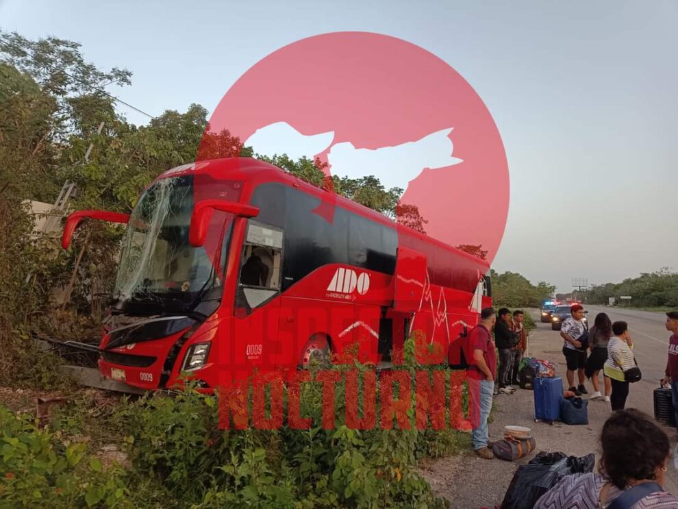 Playa del Carmen.- Chofer de un autobús de la empresa ADO se queda dormido y provoca un accidente en la carretera “El Tintal”; no hay personas lesionadas.
