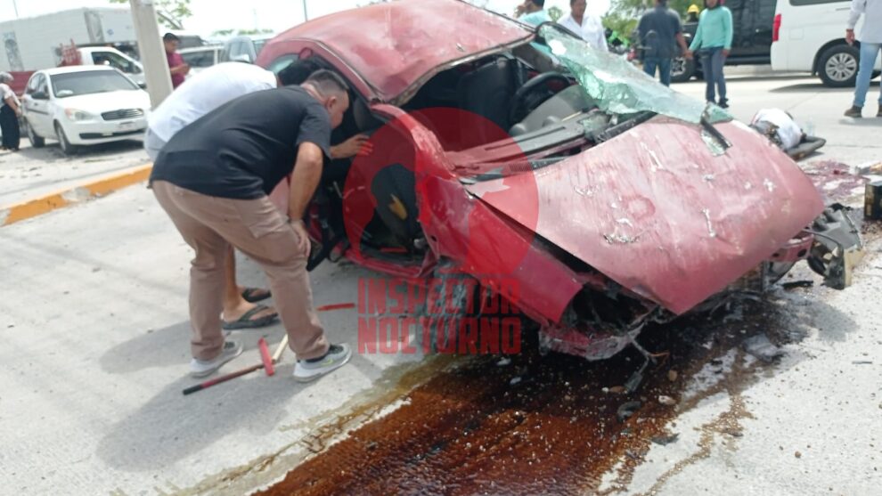 Cancún. – De forma instantánea murió el conductor de un auto luego de salir proyectado tras volcar en el boulevard Luis Donaldo Colosio; su hijo resultó herido de gravedad y fue trasladado a un hospital.