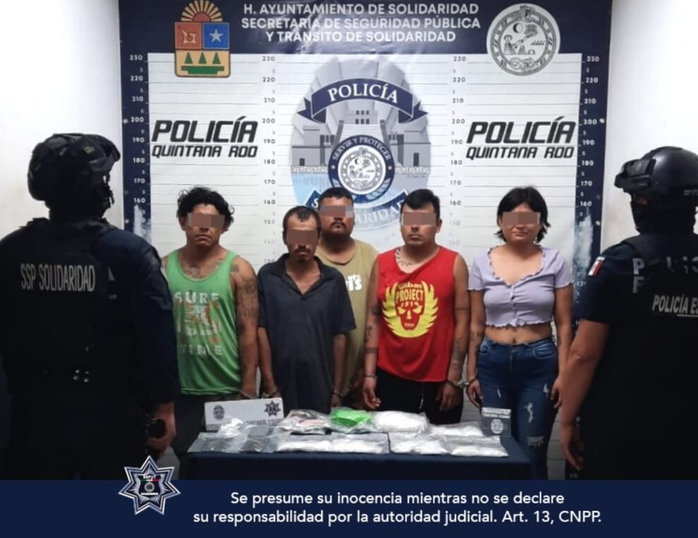 Playa del Carmen.- Cinco personas presuntamente dedicadas a la venta de narcĂłticos fueron detenidas por policĂas municipales de Solidaridad con 52 posibles dosis de drogas, como resultado del reforzamiento de la seguridad y el despliegue de mĂĄs elementos para vigilancia y prevenciĂłn.
