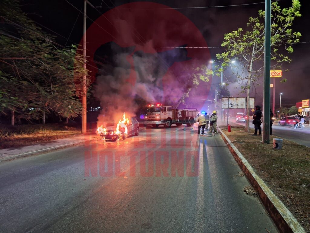 Chetumal – Un automóvil se incendió en la colonia Arboledas, luego de que al parecer, un cortocircuito en el área del motor provocara el siniestro.