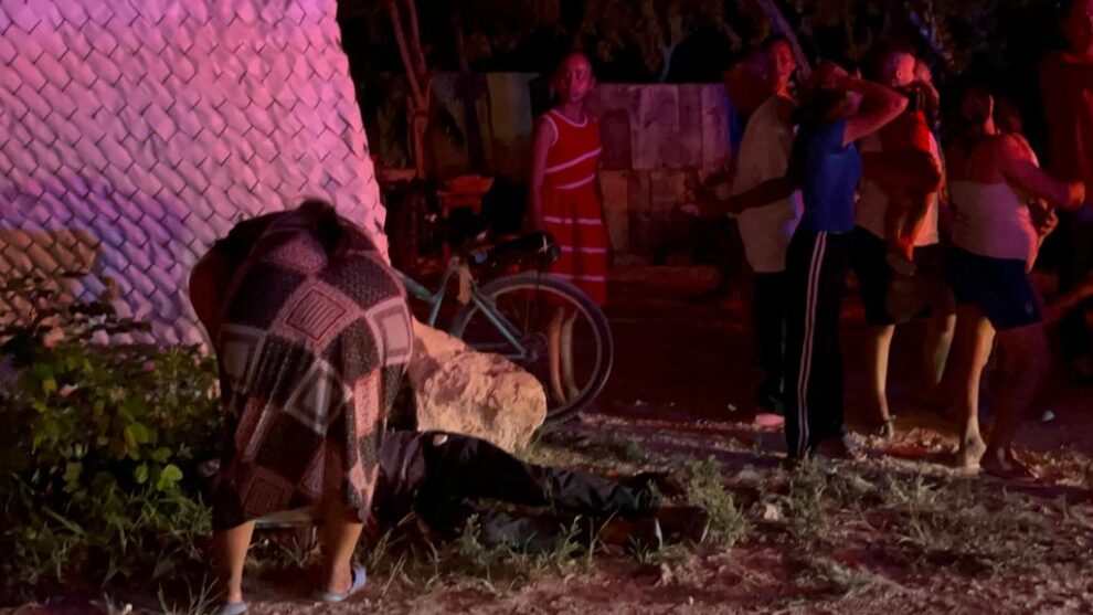 Al llegar la policía municipal visualizaron a un sujeto tirado en un camino de terracería frente a una casa el cual estaba rodeado por varias personas.