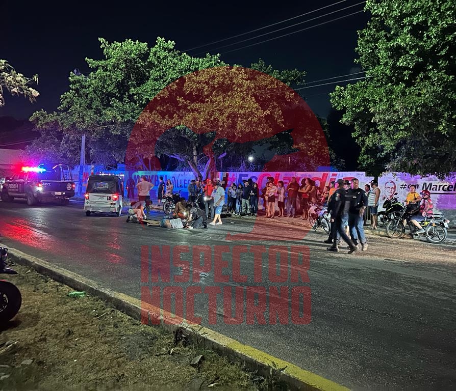 Cancún. – Un peatón resultó gravemente herido tras ser atropellado por un motociclista en la intersección de las avenidas Centenario y Costa Maya.
