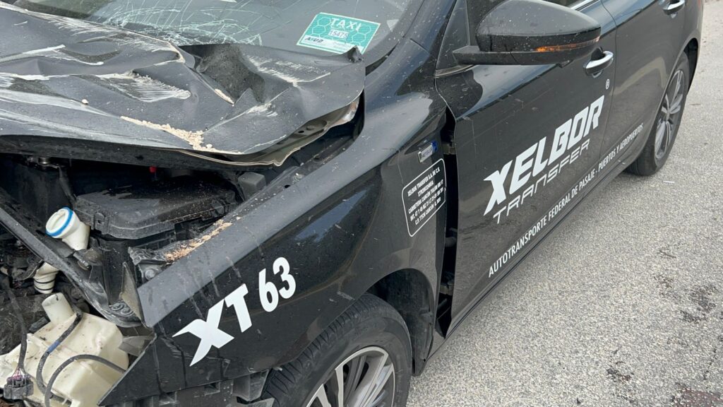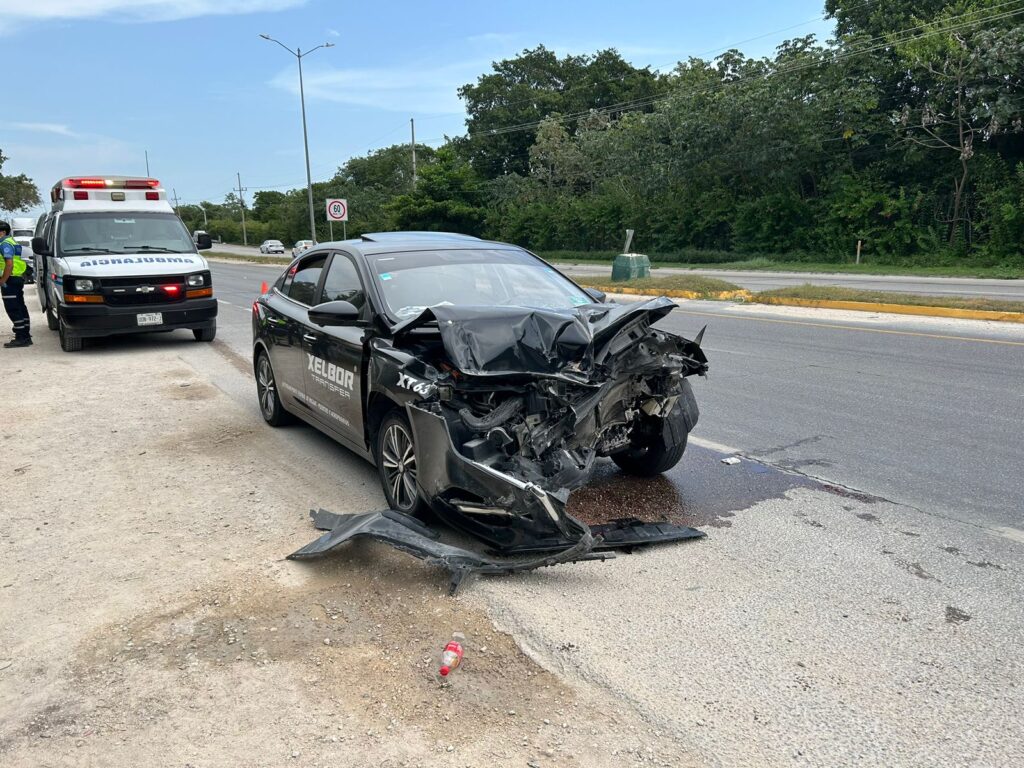 Tulum.- Turista de origen estadounidense resultó lesionada y fue trasladada al hospital por paramédicos, luego de que la unidad que rentó para ser trasladada a la ciudad de Tulum, sufriera un accidente al impactarse por alcance contra un volquete a la altura de Puerto Aventuras.