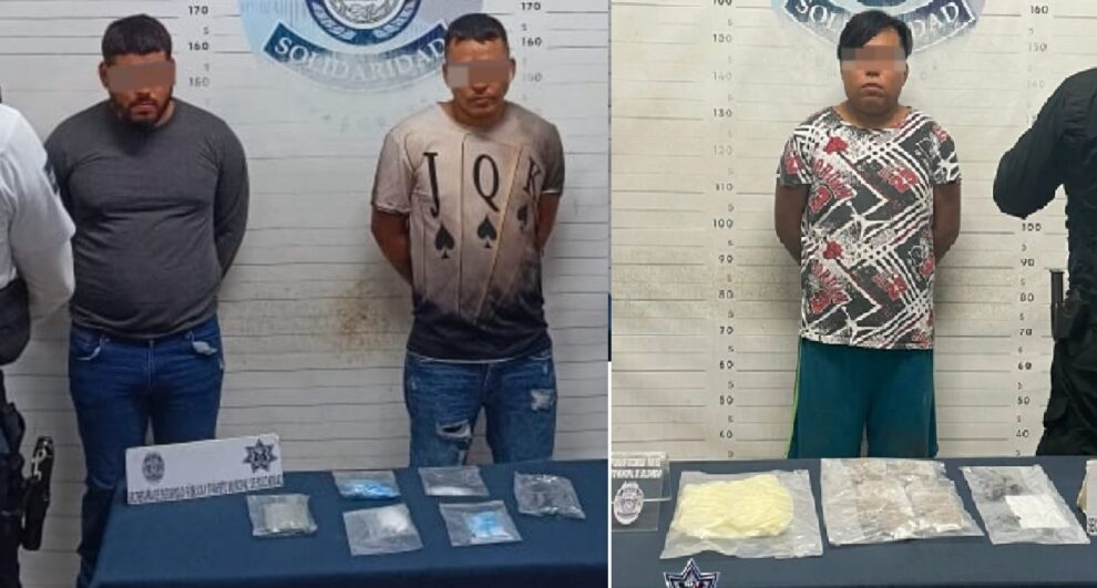 Playa del Carmen.- En un operativo, la Policía Municipal de Solidaridad llevó a cabo la detención de tres individuos y la incautación de más de 130 envoltorios que presuntamente contenían sustancias ilícitas, en dos incidentes separados.
