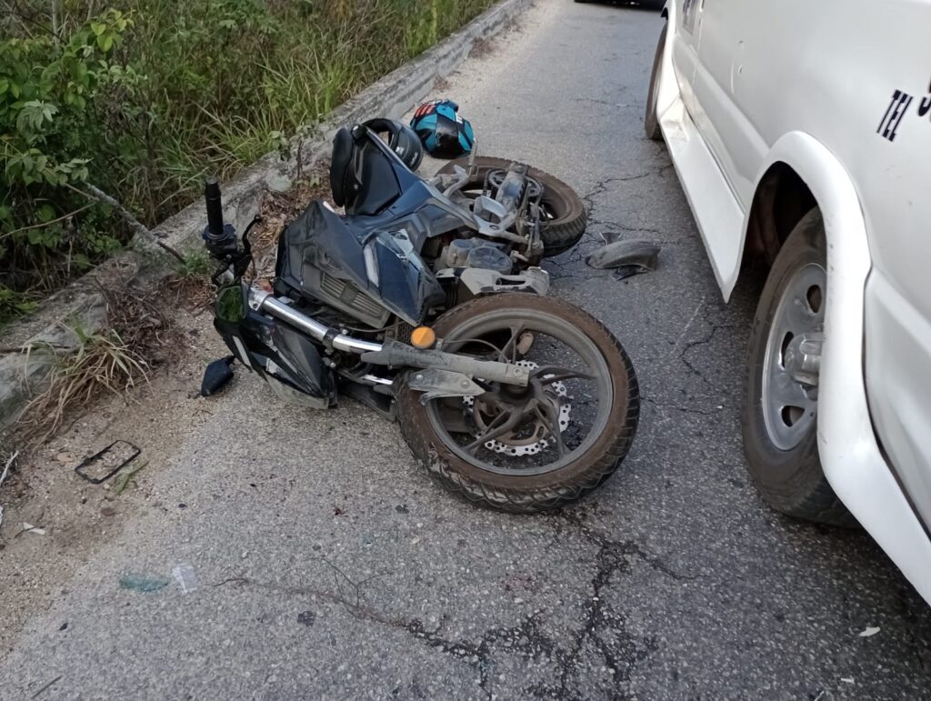 De acuerdo a los testigos, la motocicleta se estaba incorporando cuando el conductor de la urvan no midió su distancia e impacto al motociclista.