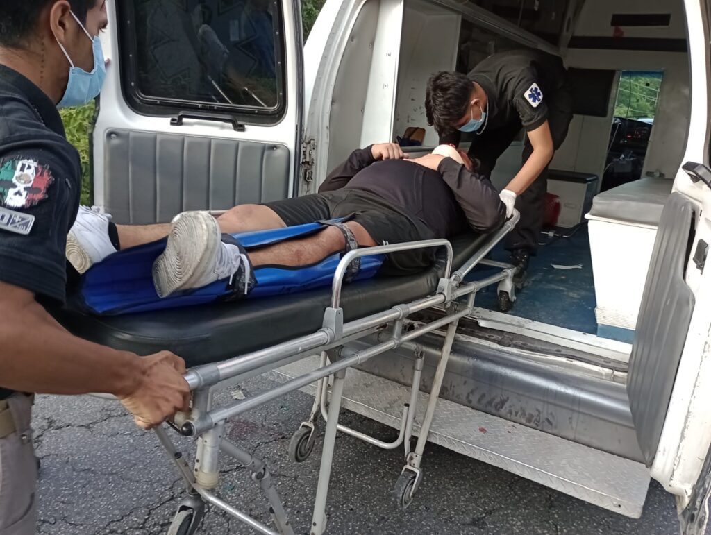Paramédicos de la empresa EMI llegaron al lugar y atendieron al motociclista, quien resultó con lesiónes en la pierna izquierda, en el brazo y un fuerte golpe en la cabeza donde presentaba sangrado.