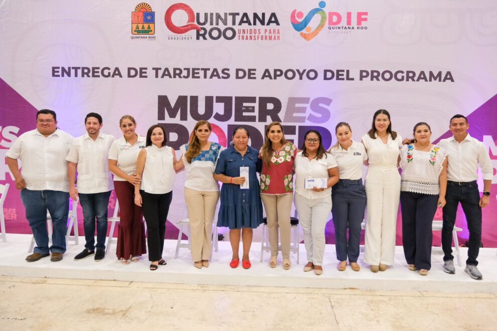 Acompañada por la presidenta municipal, Juanita Alonso Marrufo y de la presidenta del Sistema DIF Quintana Roo, Verónica Lezama Espinosa, la Gobernadora destacó que este noble programa permite apoyar a mås de 39 mil mujeres en todo el Estado, principalmente a quienes menos tienen.