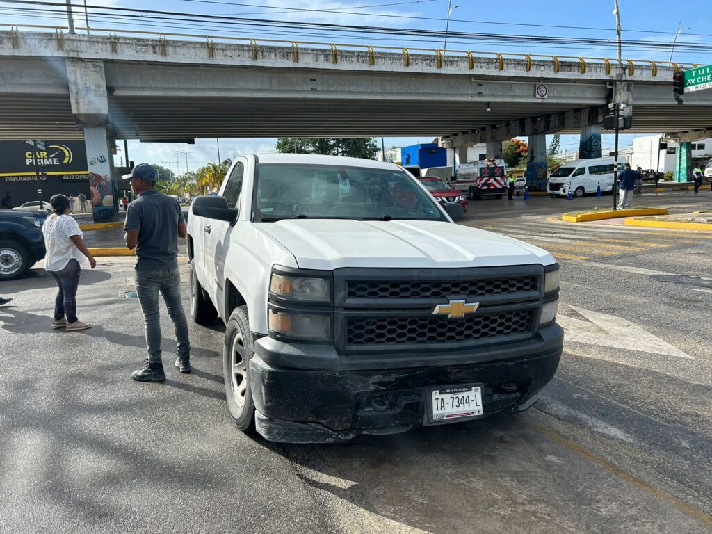 Playa del Carmen.- Provoca el conductor de una camioneta fuerte accidente en la colonia Colosio, dejando por lo menos dos personas lesionadas que viajaban en una transportadora turística, que requirieron ser atendidas por paramédicos.
