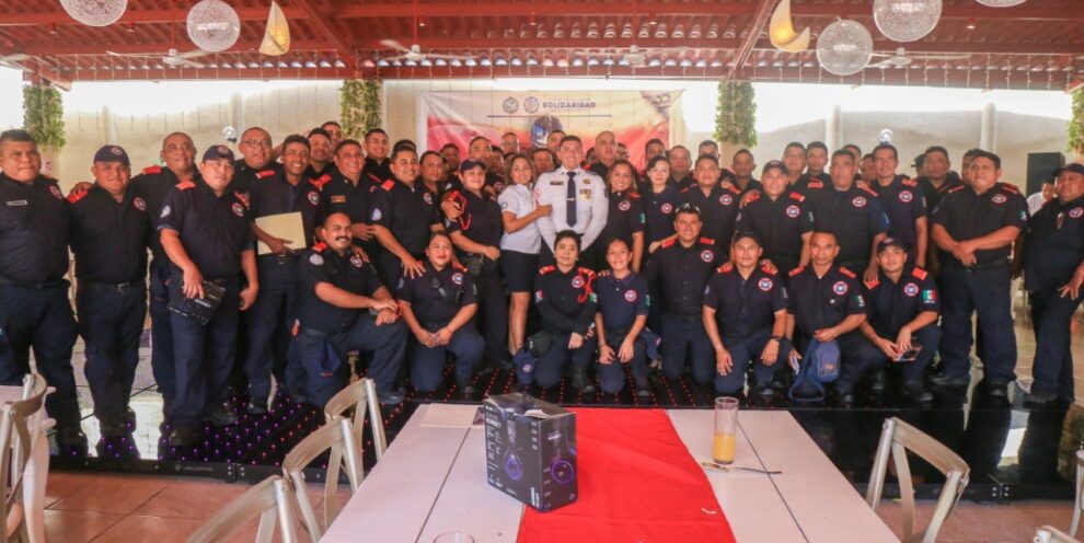 Playa del Carmen.- “Somos el cuerpo de bomberos con el mejor equipamiento en el estado, y esto lo ha hecho posible el gobierno de la presidenta Lili Campos”, destacó el director de Bomberos del municipio, Alejandro Contreras Díaz, durante el festejo a los tragahumos, en el marco del Día Nacional del Bombero.