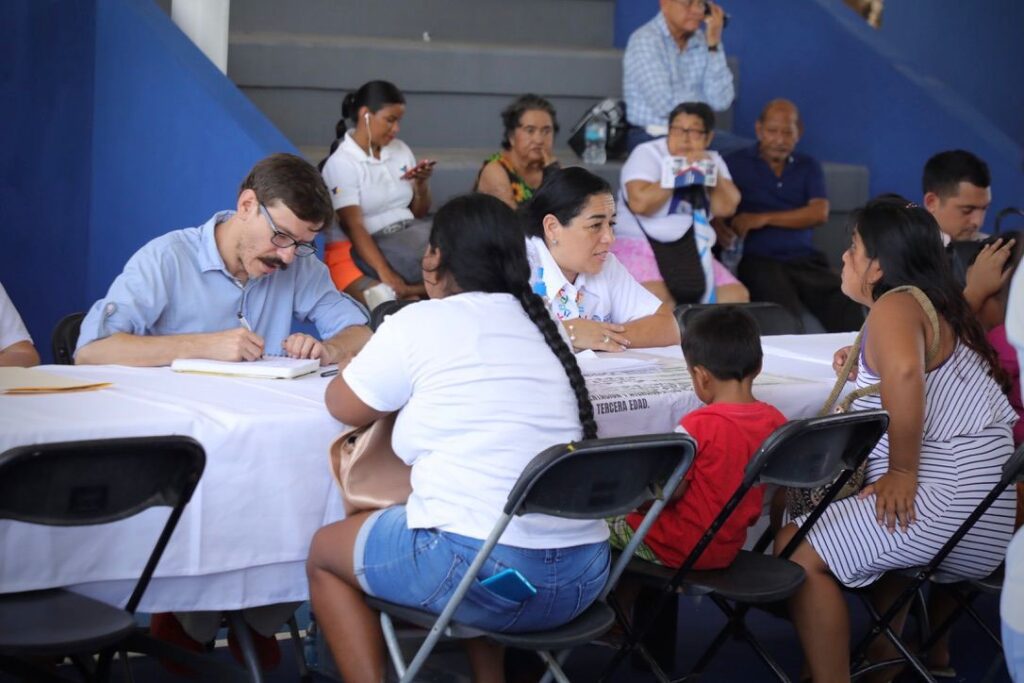 Playa del Carmen, Solidaridad, 18 de agosto del 2023.- En representación de la presidenta municipal Lili Campos, el secretario general del ayuntamiento Cecilio Puc Sansores atendió durante el programa “Estoy contigo” las solicitudes y peticiones de ciudadanos que se dieron cita en el domo de Villamar 2.