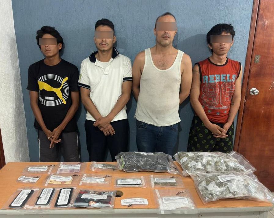 Durante otro operativo en la supermanzana 202, se detuvo a Juan “N”, Brandon “N”, Lionel “N” y Juan Carlos “N”, con sustancias ilĂcitas y un arma de fuego, tambiĂ©n relacionados con homicidios y extorsiones.