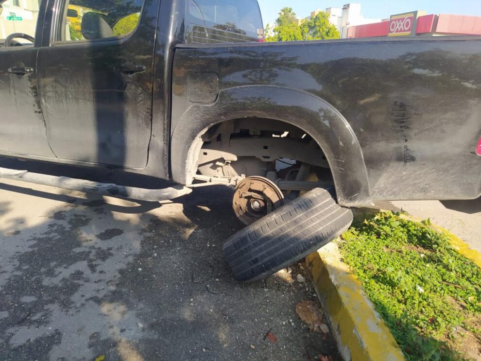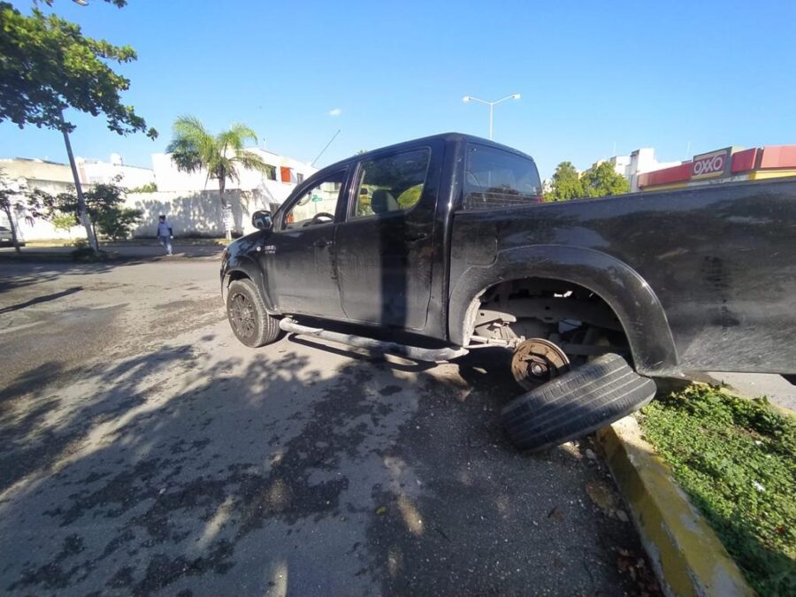El conductor de una camioneta Toyota Hiace, color blanco, con placas 23 RD 11, que iba con preferencia de paso sobre esta última avenida lo impactó en un costado haciendo que la camioneta girara y quedara montada sobre el camellón central, donde una de sus llantas se le desprendió.