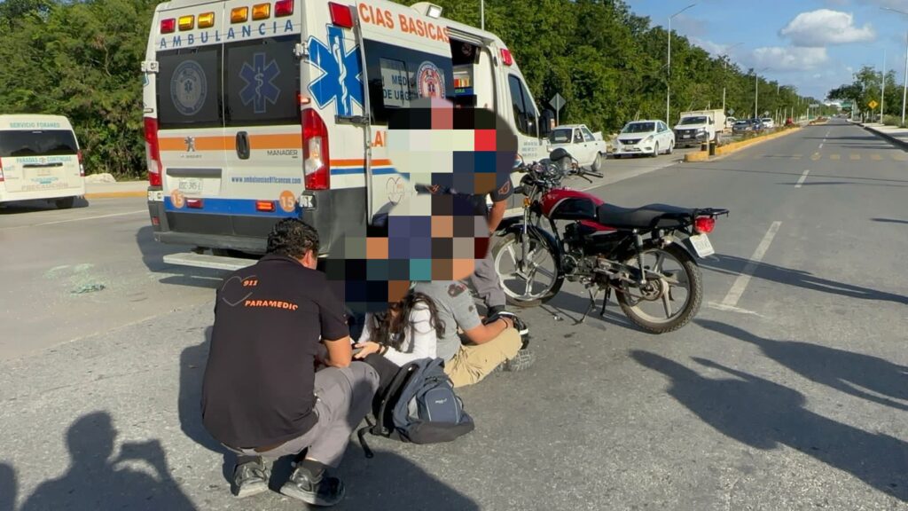 Los hechos ocurrieron alrededor de las 1:45 de la tarde cuando el conductor de una motocicleta Italika 125 con placas 85UKW5, circulaba en dirección hacia el oriente sobre la avenida 38 pero al llegar a la avenida Chemuyil el conductor de una combi de la ruta foránea Cancún- Playa del Carmen, número F138, no respetó su alto en dirección hacia el norte.