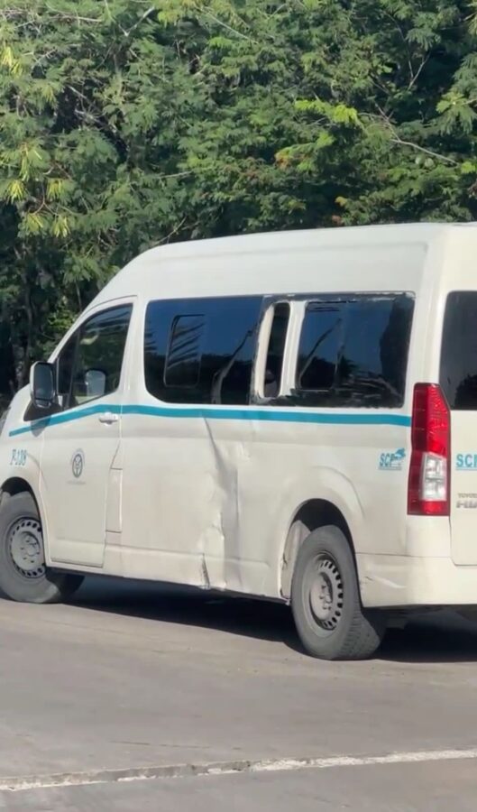 Playa del Carmen.- Dos personas resultaron lesionadas luego de que impactaron la motocicleta en la que circulaba en el costado de una combi que se atravesó en su trayectoria cuando no respetó su alto en las inmediaciones de la colonia Cruz de Servicios.