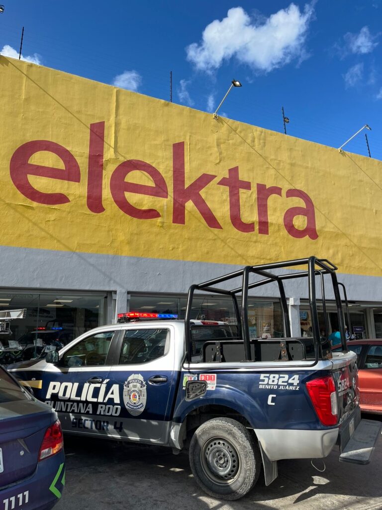 CancĂșn.- A punta de pistola, dos sujetos amagaron a un cliente de la tienda de electrĂłnicos Elektra, a quien despojaron de 10 mil pesos ademĂĄs realizaron detenciones.