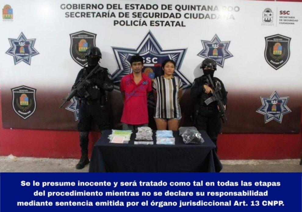 Cancún.- Con casi 300 dosis de diversos estupefacientes fueron detenidas dos personas durante un operativo de la Policía Estatal, las cuales fueron puestas a disposición del Ministerio Público.