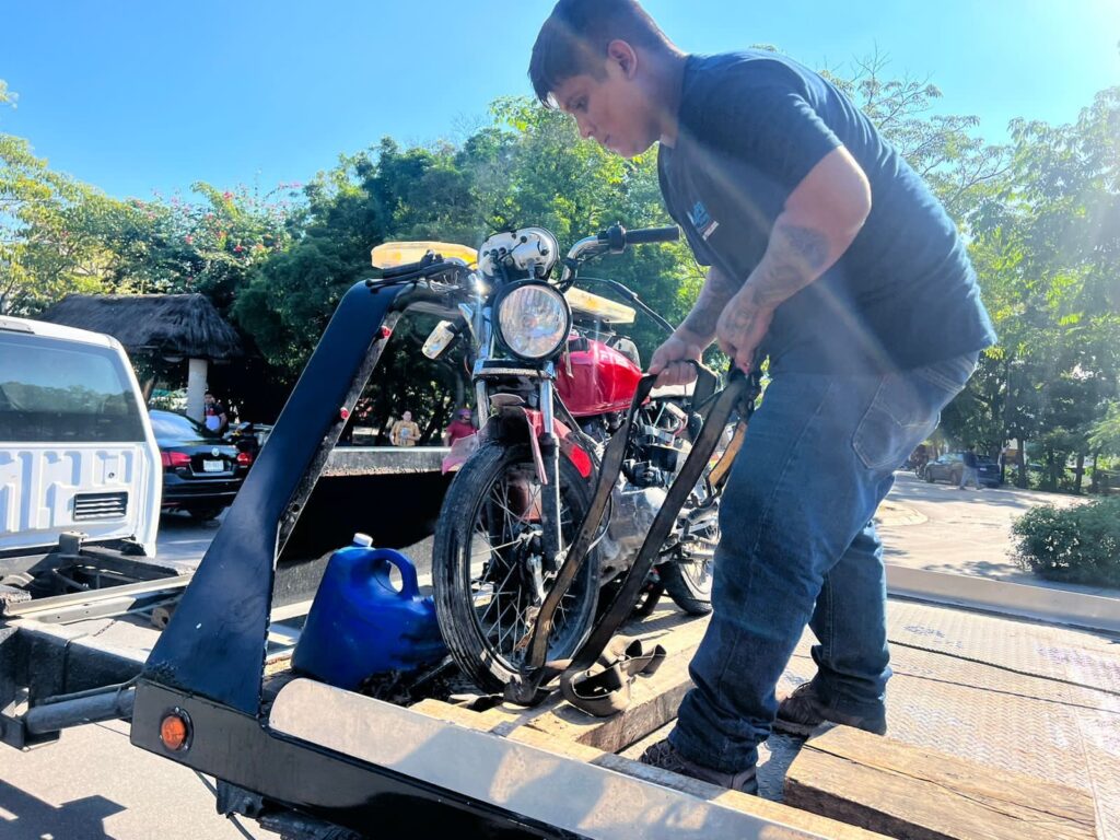Los elementos de Tránsito municipal solicitaron una grúa para levantar la motocicleta.