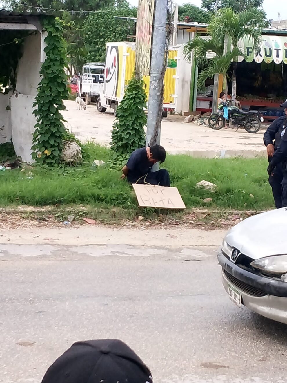 Playa del Carmen. – Vecinos de la colonia irregular in House capturaron a un presunto ladrón y, después de golpearlo, lo amarraron a un poste, colocándole un letrero para que fuera recogido por los elementos de la Policía Municipal, el cual lo señalaba como ‘rata’.