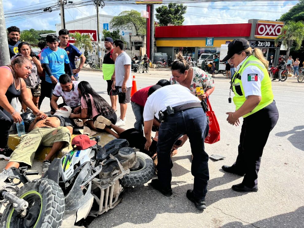 En tanto que el motorizado, presentó traumatismo cráneoncefálico por lo que fue trasladado de emergencia hasta el Hospital general de Cancún.