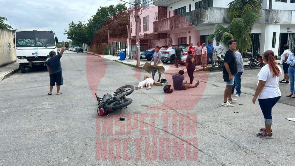Playa del Carmen.- Motociclistas fueron lesionados por el conductor de un vehículo particular que les cerró el paso en la colonia Ejido, por no respetar su alto; los dos ocupantes de la unidad de dos ruedas fueron trasladados a un hospital por las lesiones y golpes que sufrieron.