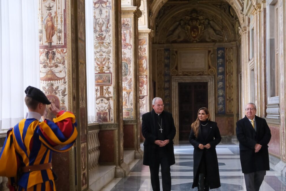 Roma.- La gobernadora Mara Lezama Espinosa se reunió con el Excmo. Monseñor Edgar Peña Parra, Sustituto de la secretaria de Estado del Vaticano (encargado de la política de la Santa Sede), dialogaron sobre el modelo de gobierno de Humanismo Mexicano y el trabajo en la construcción de obras históricas que son las vías de igualdad y paz para las y los ciudadanos.