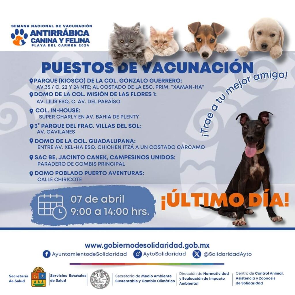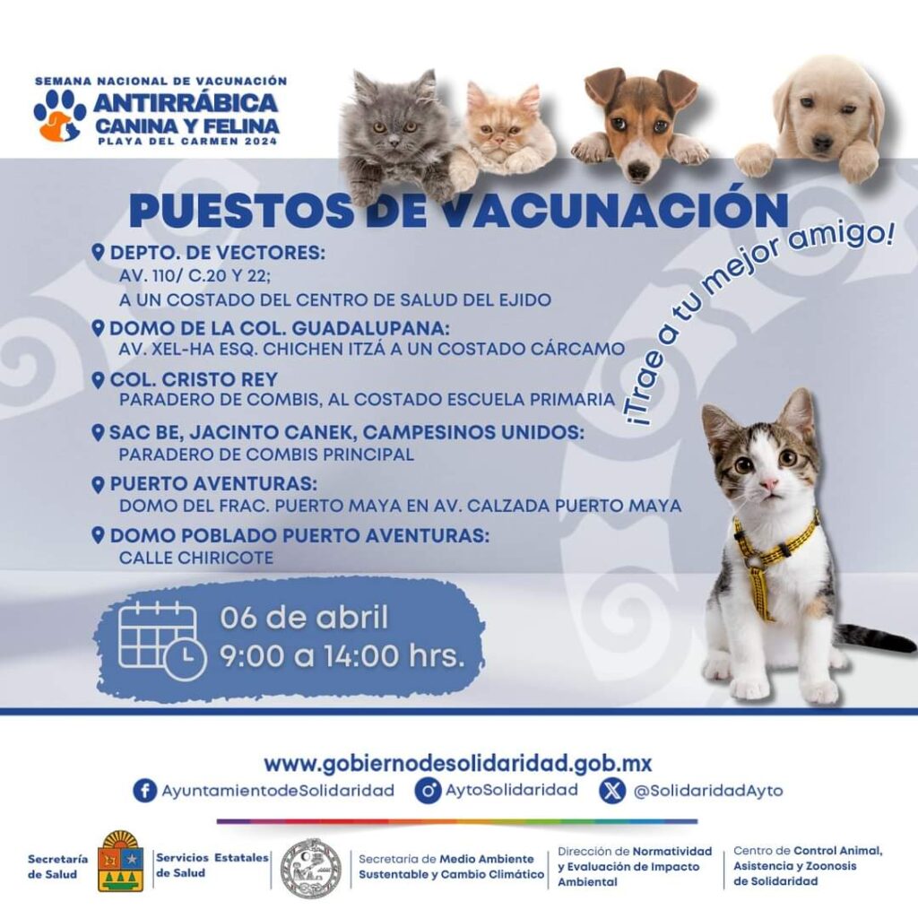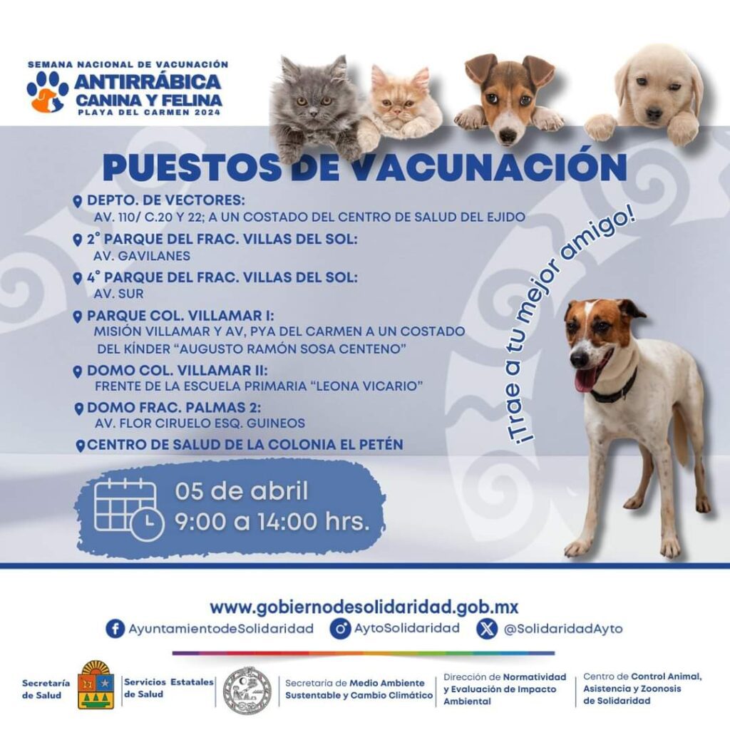 🔺En Solidaridad continúa la semana nacional de vacunación antirrábica. Checa los puestos de vacunación.