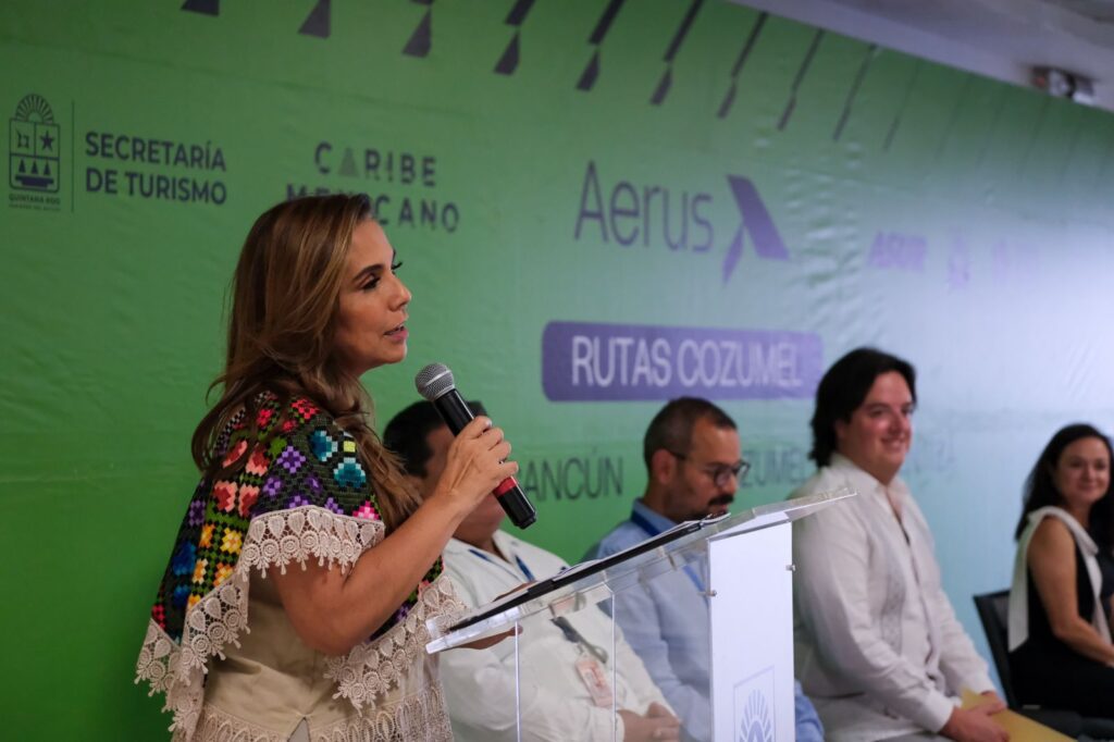 Con la presencia del director general de Aerus, Javier Herrera García; del administrador del aeropuerto de Cozumel, Jorge Carlos Campos Romero; y la presidenta municipal, Juanita Alonso Marrufo, la Gobernadora precisó que estas nuevas rutas aéreas fortalecerán la economía local, crearán empleos y abrirán un sinfín de oportunidades para todas y todos. “Estamos volando juntas y juntos hacia un futuro aún más prometedor en esta la nueva era del turismo del caribe mexicano”, dijo.