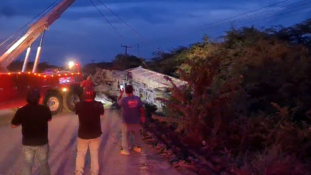 Una góndola volcó cerca del crucero de Juan Sarabia en la carretera federal 186, generando una situación de riesgo para los conductores que transitaban por la zona.