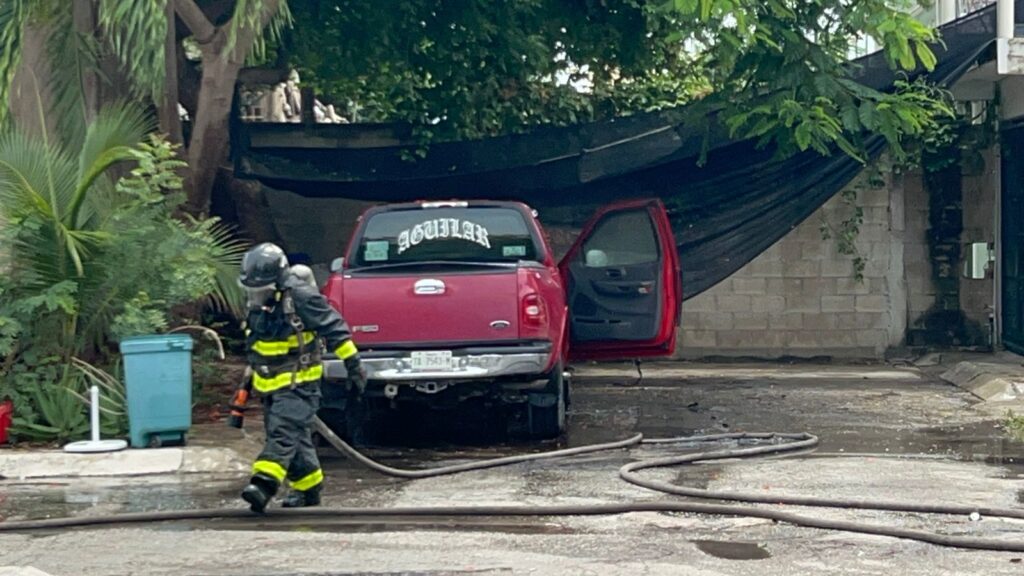Vecinos del fraccionamiento Mundo Hábitat, solicitaron la ayuda de los bomberos luego de que una camioneta comenzó a incendiarse, pero frente a ella había un vehículo estacionado que arriesgaba con verse afectado por el fuego.