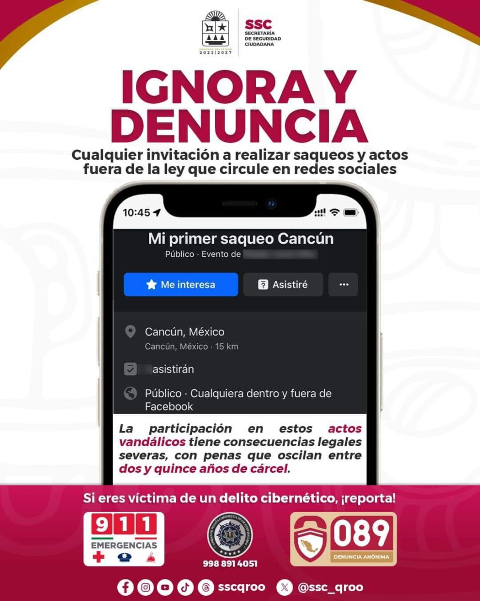 Denuncia perfiles sospechosos: Si ves perfiles que incitan al saqueo, comunícate al 9988914051 para reportarlo o comunícate con la Unidad de Policía Cibernética de Quintana Roo.