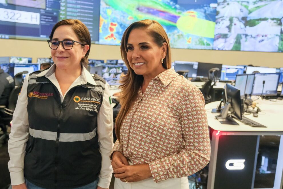 Cancún.- Para fortalecer el trabajo de manera coordinada y preventiva y anticipar acciones ante los fenómenos metereológicos, principalmente por el huracán “Beryl”, la gobernadora Mara Lezama Espinosa se reunió con la coordinadora nacional de Protección Civil Laura Velázquez Alzúa.