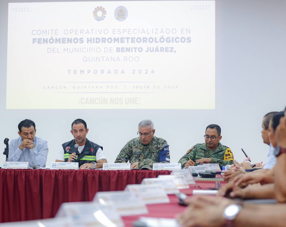 Cancún.- El Encargado de Despacho de la Presidencia Municipal de Benito Juárez, Pablo Gutiérrez Fernández, declaró formalmente abiertos los trabajos de la Sesión Permanente del Comité Operativo Especializado en Fenómenos Hidrometeorológicos del Municipio de Benito Juárez, Temporada 2024, por lo que autoridades de las diversas dependencias involucradas se ponen a la vanguardia ante la alerta verde emitida en todo el estado de Quintana Roo, por el acercamiento del huracán “Beryl”, que ha alcanzado la categoría cuatro en la escala Saffir-Simpson.