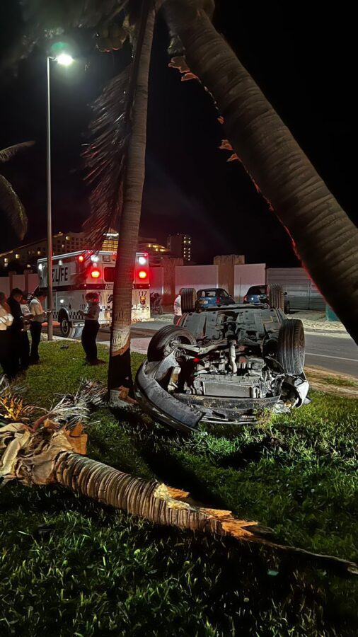 Los cuerpos de emergencias y primeros auxilios acudieron a la Zona Hotelera, a unos metros de playa Delfines, donde se confirmó que el conductor de un auto compacto se había impactado contra unas palmeras.