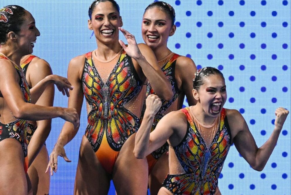 🔺Las nadadoras aztecas obtuvieron la tercera mejor puntuación de la jornada con su vuelo de la mariposa monarca, y se colocaron en la octava posición.
