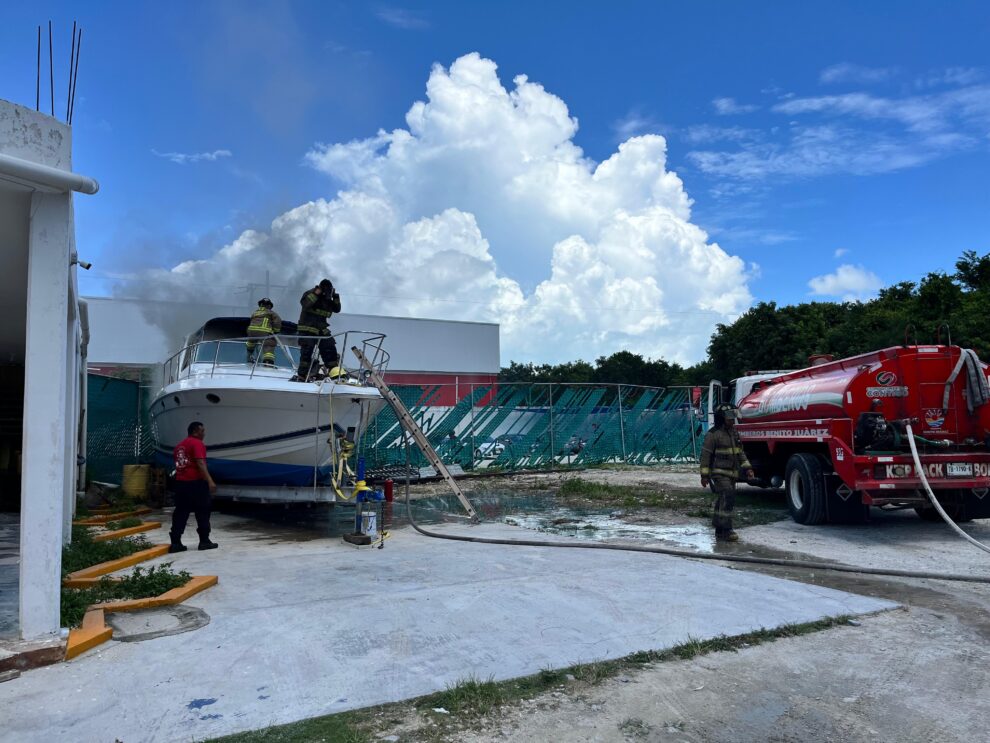 Cancún.- Una embarcación tipo yate se incendió la tarde de este lunes, en un taller mecánico ubicado en el polígono sur de la ciudad, lo que dejó diversos daños materiales y a un hombre con quemaduras de primer grado.