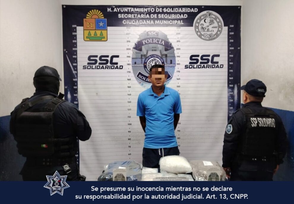 Durante las labores de prevención de delitos la Policía Municipal de Solidaridad aseguró a una persona en posesión de más de 456 posibles dosis de narcóticos en el fraccionamiento Palmas II.