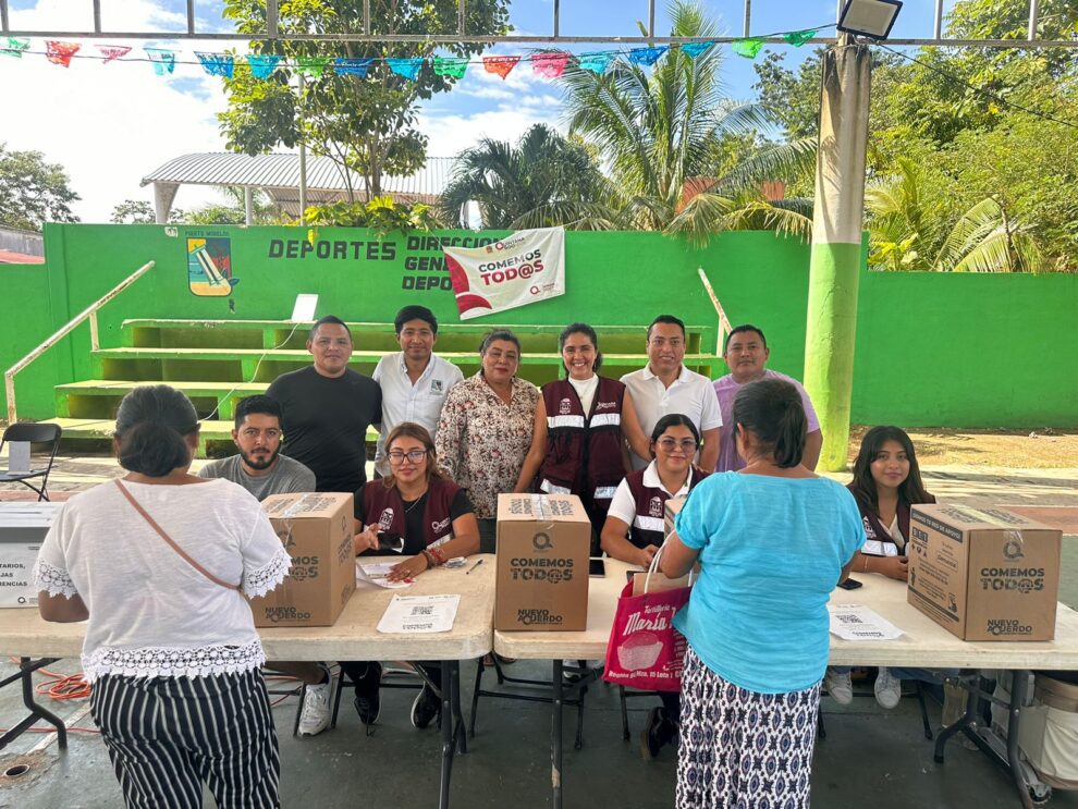 La entrega de apoyo alimentario se realizó en la cabecera municipal, en la Región 17, calle Ciricote de la Colonia Zetina Gasca, al igual que en la Delegación Leona Vicario, en el Domo del Cenote, donde se convocó a los 1,400 beneficiarios, quienes recibieron sus tarjetas del programa “Comemos Tod@s”, luego de que presentaron su documentación, como CURP y credencial vigente del INE.