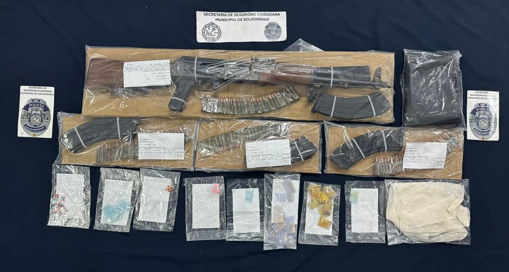 La detención la realizaron policías preventivos en la calle 35 Norte, entre las calles 62 y 64 Norte, quienes hallaron a los sujetos en posesión de 43 envoltorios de posibles narcóticos. También se les decomisó un arma larga, cuatro cargadores y ciento seis cartuchos.