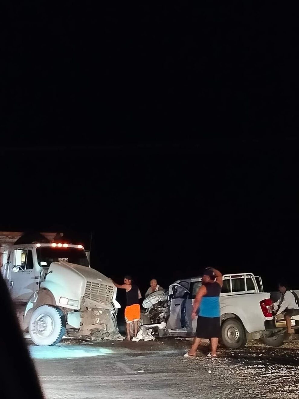 Un aparatoso accidente vehicular se registró poco antes de la medianoche a pocos kilómetros del poblado Andrés Quintana Roo, donde una camioneta pick up blanca colisionó de frente con un volquete, dejando daños materiales valorados en decenas de miles de pesos. Afortunadamente, no se reportaron fallecidos ni heridos graves en el percance.