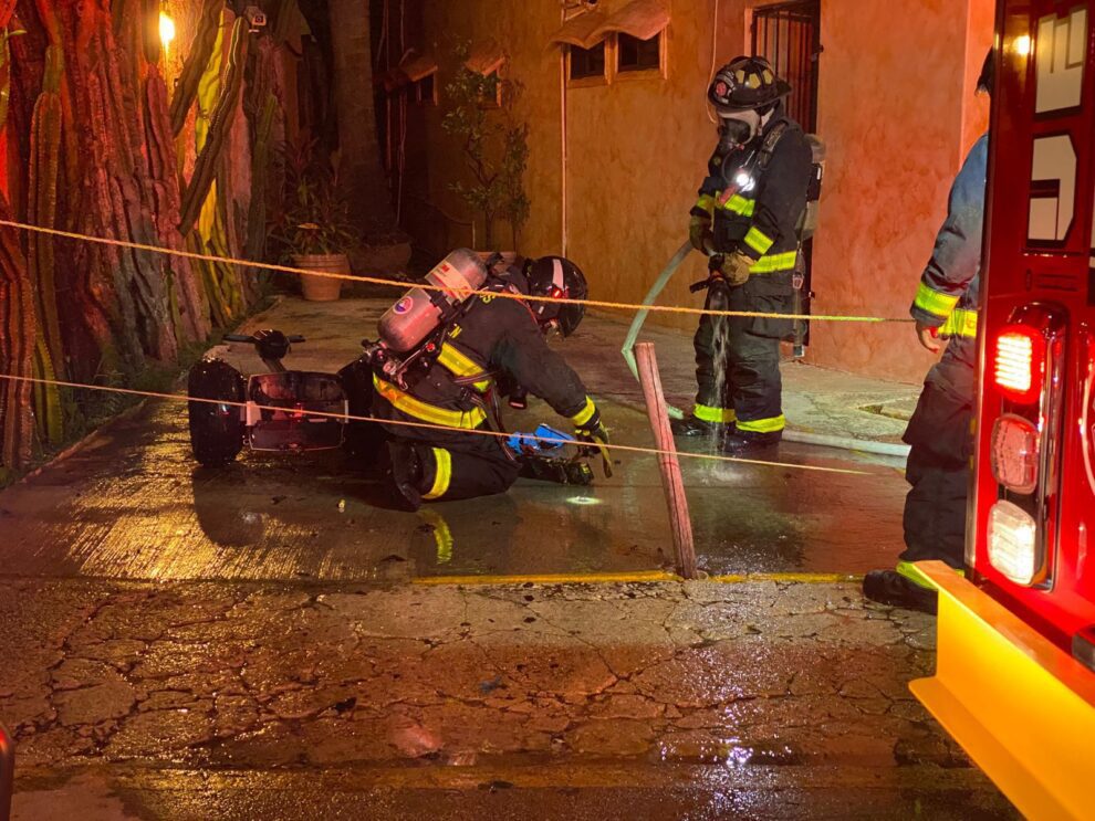 Los hechos ocurrieron alrededor de las 2:00 de la mañana, cuando los trabajadores de un hotel llamado Barrio Latino, ubicado en la calle 4, entre avenidas 5ta y 10, solicitaron la presencia de los bomberos derivado de que un scooter que se encontraba dentro de una bodega se había incendiado.