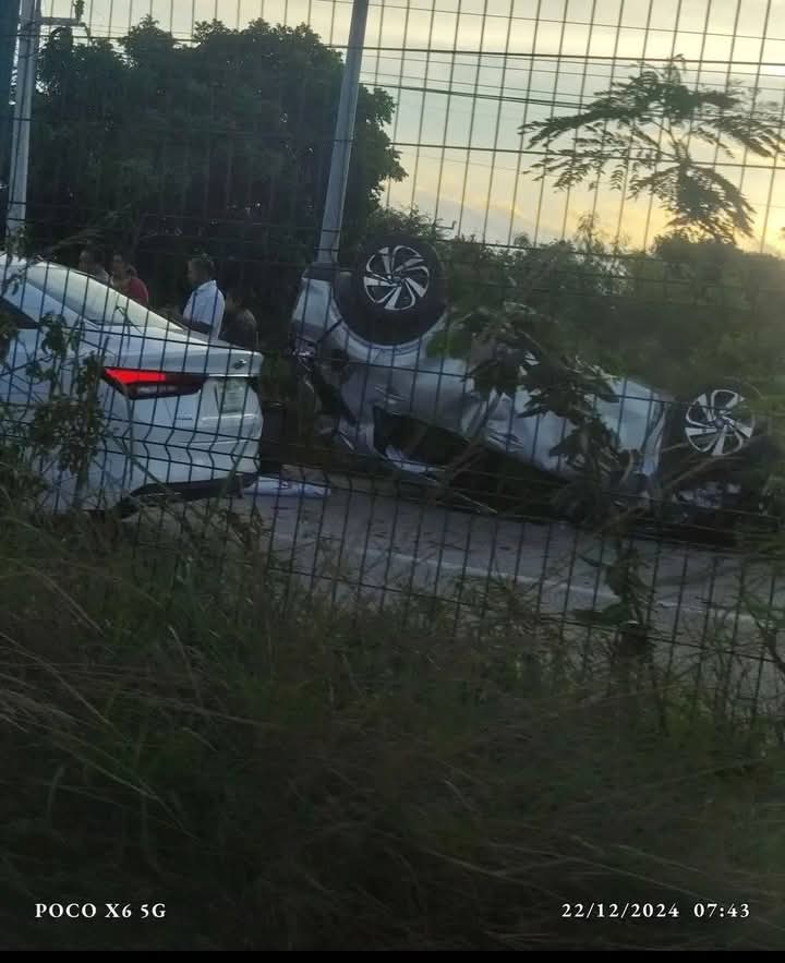 El segundo auto involucrado también quedó volcado sobre el carril hacia Playa del Carmen, lo que provocó que se generara tråfico lento en ambos sentidos de la vialidad.