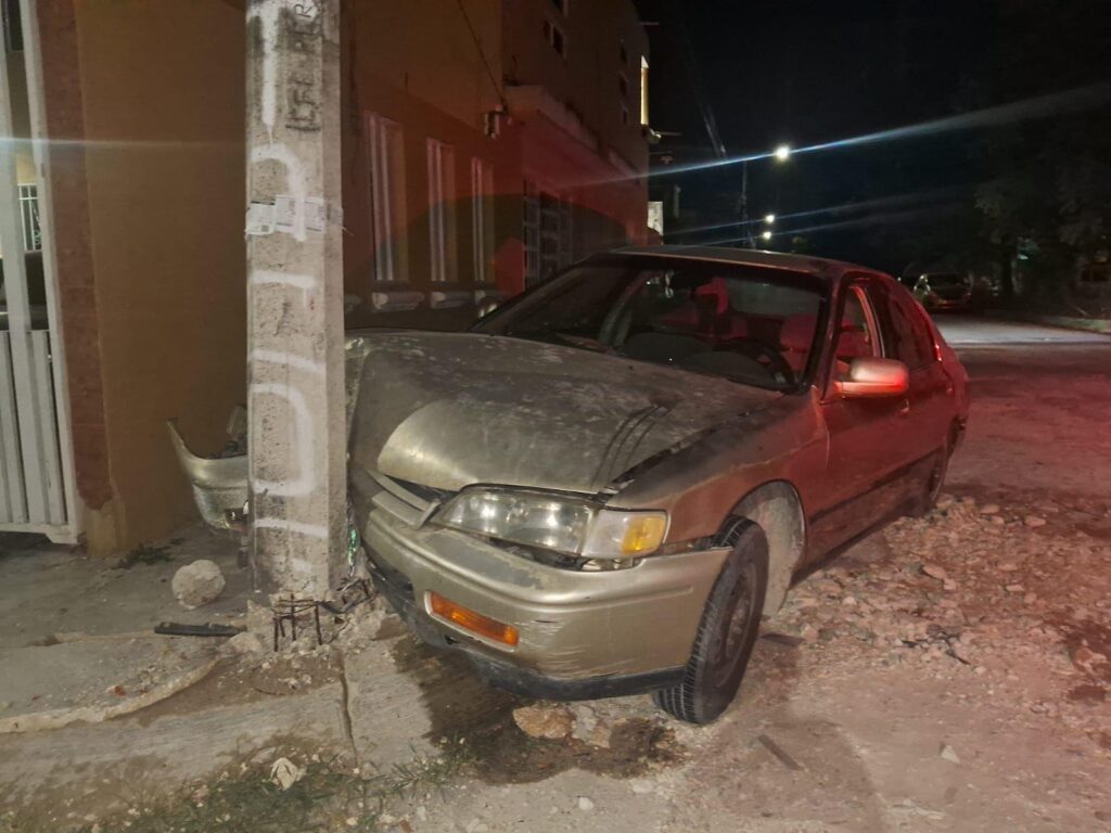 Mientras que en la avenida Centenario con calle 103 de la supermanzana 225, el conductor de un auto Honda Accord de color café, perdió el control de la unidad al parecer bajo los efectos del alcohol y exceso de velocidad.