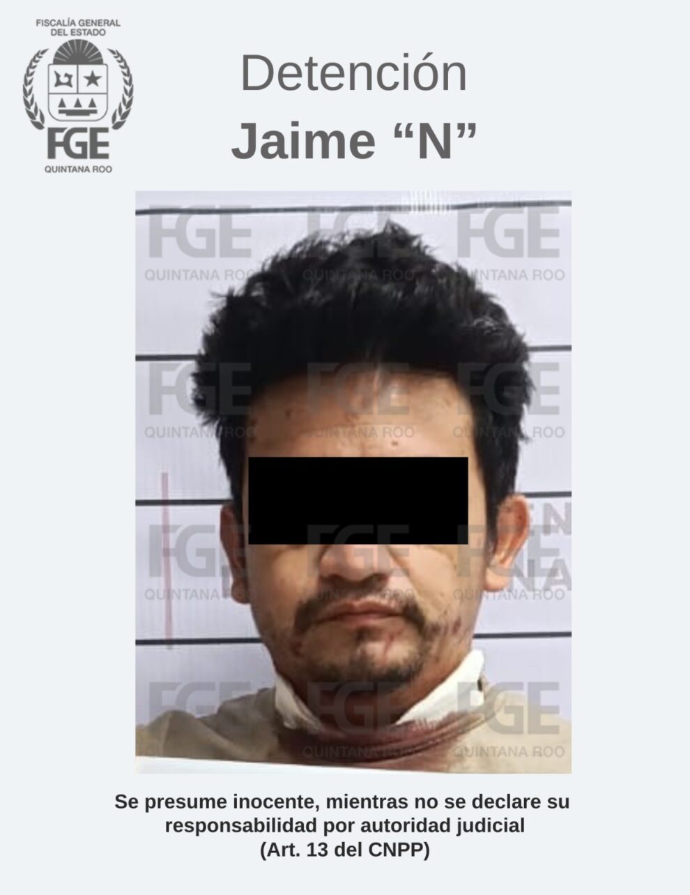 Personal de la Fiscalía General del Estado detuvo a Jaime “N”, por su presunta relación en hechos posiblemente constitutivos del delito de feminicidio, en agravio de una víctima de identidad reservada, en Playa del Carmen.