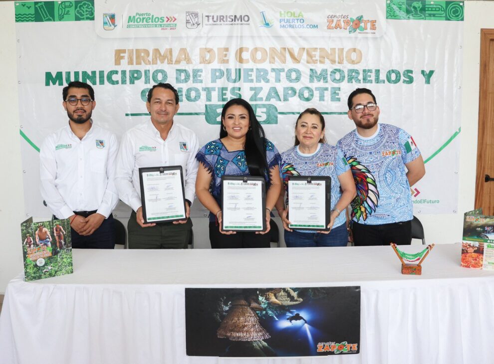 🔺La Presidenta Municipal de Puerto Morelos signó un Convenio de Colaboración entre el municipio y Cenotes Zapote a fin de incentivar la promoción del destino.