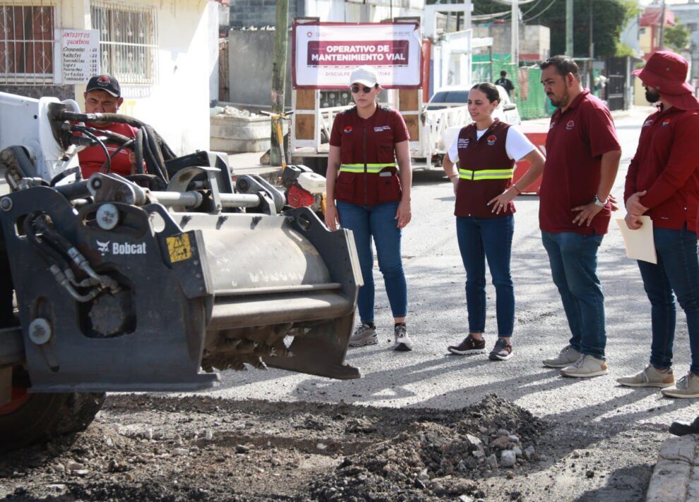 Junto a la secretaria municipal de Obras Públicas y Servicios, Samantha Hernández Cardeña, así como el titular de Servicios Públicos, Antonio de la Torre Chambe, la Alcaldesa constató el correcto trabajo de bacheo para asegurar el bienestar de los residentes.