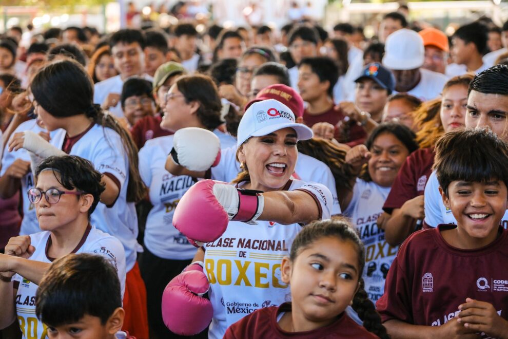 Al encabezar en Quintana Roo la Clase Nacional “Boxeando por la Paz” promovida por la presidenta Claudia Sheinbaum Pardo, la gobernadora Mara Lezama Espinosa llamó a todas y todos los quintanarroenses a que cada golpe que den a su costal, sea un golpe contra la violencia. Que cada esquive sea una forma de eludir las actitudes autodestructivas.