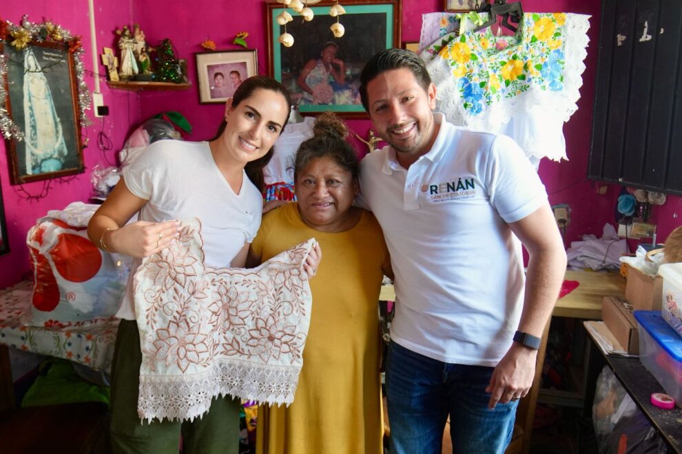Cozumel.- Como parte de su compromiso con las familias y el impulso a las mujeres emprendedoras, el diputado y dirigente del Partido Verde en Quintana Roo, Renán Sánchez Tajonar, visitó a la señora María Alejandrina, una bordadora de la colonia San Miguel 2 en Cozumel, que ha dedicado más de 30 años de su vida a este trabajo.
